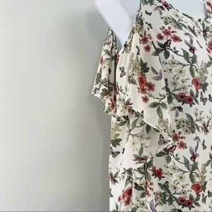 This womens butterfly floral print ruffle cold shoulder Max Studio blouse top shirt is a wardrobe essential!