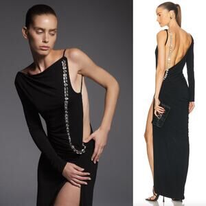 MAY MASHIAH X FWRD | NWT Isabella Dress in Black Backless Crystal Strap Maxi S