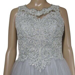 Step into enchantment with this exquisite beaded fairy prom dress. This beautiful dress features a princess silhouette with flared tulle skirt and intricate beading, perfect for making a statement at any special occasion. Size 4.