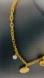 Elegant gold chain necklace featuring unique charms. Perfect for adding a touch of sophistication to any outfit.