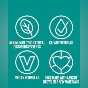 That's why Green Edition is built on 4 pillars: (1) formulas that contain a minimum of 70% natural-origin ingredients*, (2) formulas that are vegan, meaning they have no animal-derived ingredients,