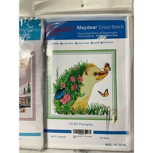 Lot of 2 Maydear cross stitch kits. Hedgehog and deer. New unopened