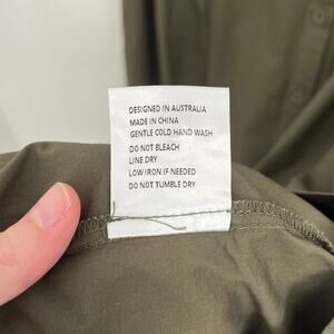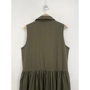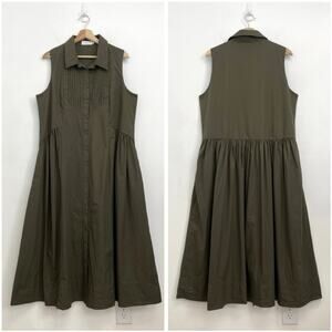 MAYE Corinne Shirtdress Poplin Cotton Relaxed A-Line Midi Dress Khaki - Large