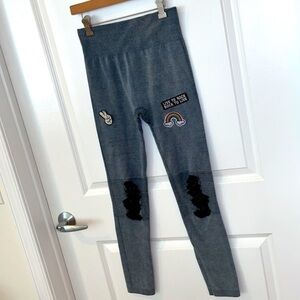 MAZE COLLECTION | Gray Rock & Roll Theme Leggings, Junior Size S/M.