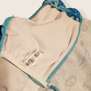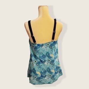 Large MAZU SWIM Waterfall Draped Tankini Top Bathing Suit Aqua Turquoise Paisley