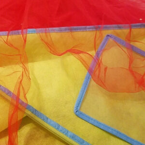 A little ripping of tulle at bottom of dress from a heel but really unnoticeable due to fullness of dress
