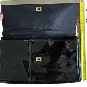 MB MARKAY CLUTCH CHIC VINTAGE BLACK PATENT LEATHER SILVER ACCENT VERY VOGUE