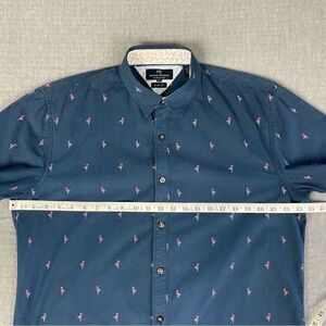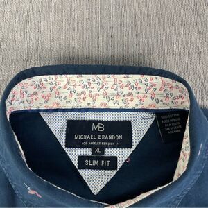 MB Michael Brandon Slim Fit Blue Flamingo Short Sleeve Button Down Shirt Men’s Size XL