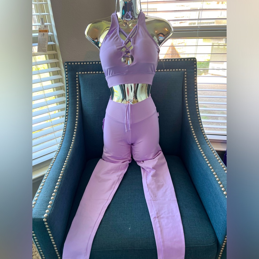 NEW 2 piece beautiful lilac color MBR Fit from Brazil. The top criss crosses at the front and opened in the back. The cute pants tie at the front and they scrunch at the back with pockets. BRAND NEW WITH TAGS. Retails for $70. (No refunds or exchanges. I recommend xsmall-small)