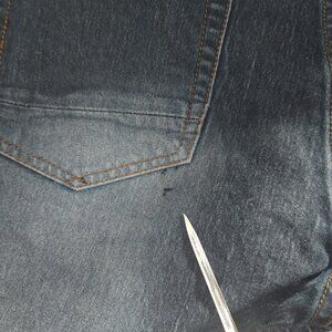 There is small stain right under one of the back pockets. It looks like it might have be pen stain. Please review the picture before purchasing.