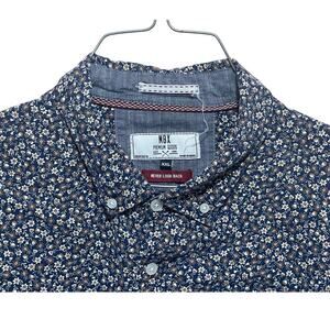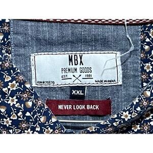 MBX Men's Button Down Casual Shirt Floral Navy Tan Button Collar Pocket XXL
