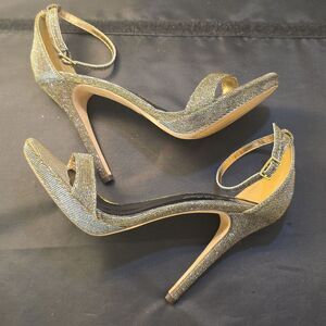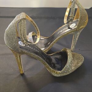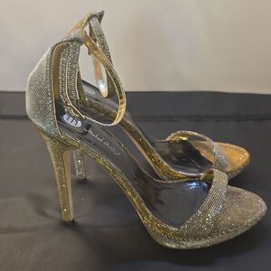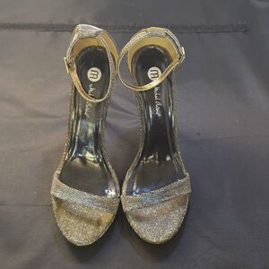 M BY MICHEAL ANTONIO SHIMMER GOLD WOMEN's HIGH HEEL SIZE 8.5 COLOR GOLD Step out in style with these stunning gold heels from Michael Antonio. Perfect for any occasion, these shoes add a touch of elegance to your outfit.open toe all man-made materials lining man-made material adjustable buckle closure with ankle strap closure Round toe heels height measurements approximately 5"inched THIS ITEMS IS PRE-OWNED EXCELLENT CONDITION WITH ONLY LIGHT SIGNS OF WEAR IF ANY CHECK THE PICTURES