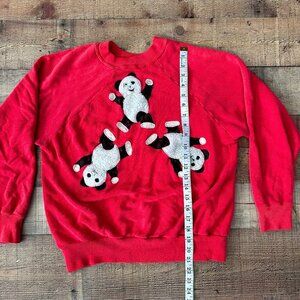 This vintage 1980s red sweater features a charming panda bear design. Perfect for adding a retro touch to your wardrobe, it's ideal for casual outings or cozy days at home.