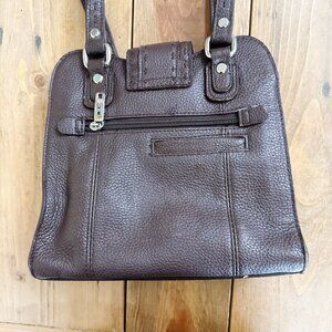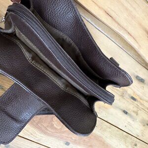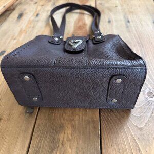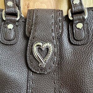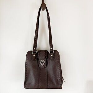 MC Brown Leather Purse Silver Heart Shoulder Bag Lots of Pockets