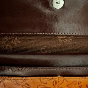 MC Embossed Leather Western Style Clutch Wallet with silver tone center charm