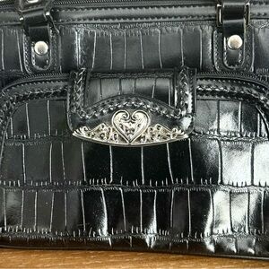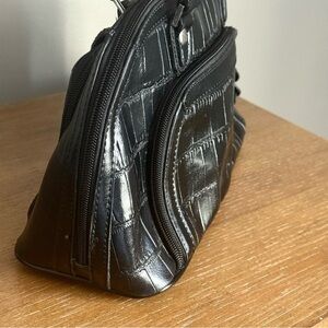 M.C. Marc Chantal Black Crocodile Embossed Leather Shoulder Handbag Purse