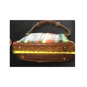 Marc Chantal M.C. colorful striped shoulder bag in good used condition showing some wear inside and out. Please look at all pictures. Inside and outside pockets, inside key snap and pen, lip stick slots.