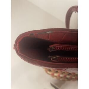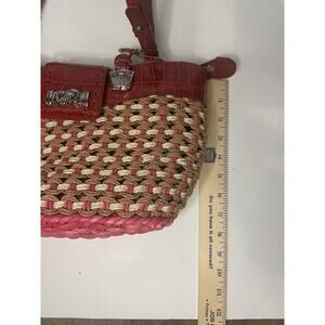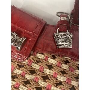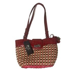 "M.C. Marc Chantal Red Straw & Leather Shoulder Bag Silver Tone Hardware NWT