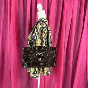 MC Marc Chantal brown croc embossed shoulder bag