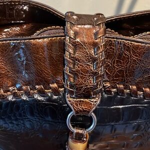 MC Marc Chantal croc embossed /hi gloss patent leather shoulder bag Bk/Brn NWOT