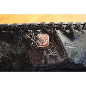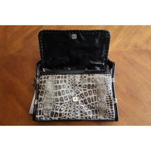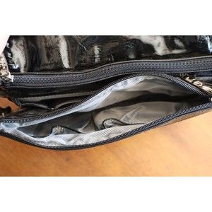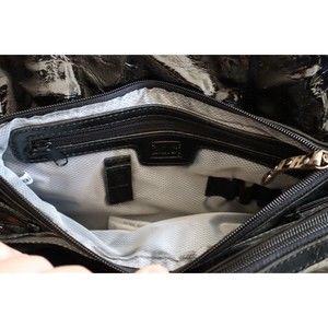 M.C. Patent Leather Blk Gray Faux Gator Print Purse Multiple Compartments Tassel