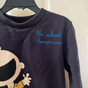 MC2 Saint Barth x Peanuts Charlie Brown Sweatshirt No School Tomorrow Boys Size 6. Adorable sweatshirt from the MC2 Saint Barth x Peanuts collaboration, Charlie Brown on the front with "No school tomorrow" embroidered on the front corner. Has been worn and washed and there is some wash wear and navy fade to the color - please see the pictures. Still has a ton of life left, but is not perfect.