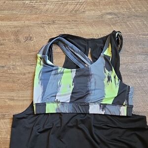 MCA Athletic Black Tank Top with Cutout Back With Attaced Colorful Sports Bra