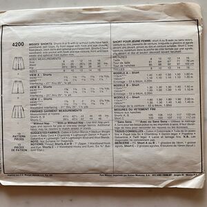 MCCALLS PATTERN 4200 Shorts & Skirts MISSES SIZE 16 UNCUT Vintage