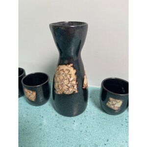 MCI Vintage Saki Set Black Ceramic Boxed Collections Japan