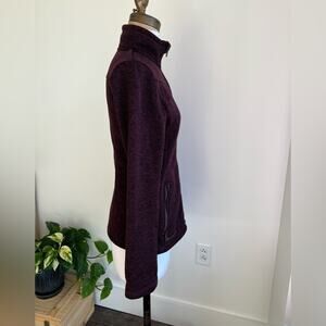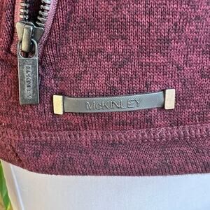 Cozy fleece jacket from McKinley in a deep burgundy color. Zip closure, fleece lined with knit polyester outter. Zip pockets.