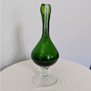 MCM 12” Empoli Rossini ? Hand-Blown Glass Ewer Pitcher in 1960s-1970s Green SEE