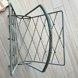 MCM 1950s French Vintage Magazine Record Rack blue green knobs iron RARE boho