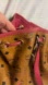 Some rubs to the corners and mark on the bottom, see me pointing to it. This bag is a beauty can be made smaller or can be big by pulling the leather pink strap through the circles.