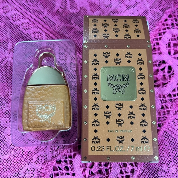 Stylish MCM accessory with a luxurious design. Features a brown and gold finish. Ideal for a chic look.