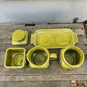 MCM 70s Japan Floral Daisy Square Olive Green Retro Kitsch Kawaii Sugar Cream Ceramic Tea Set