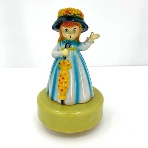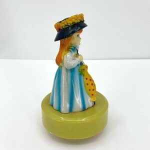 MCM 70s-80s Plastic Kitschy Musical Figurine Redhead with Umbrella & Hat