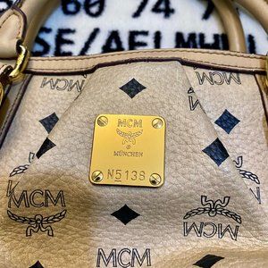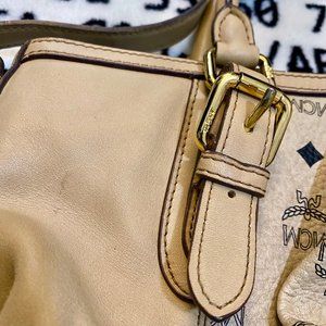 MCM All Over Logo Print Leather Crossbody Bag / Handbag.