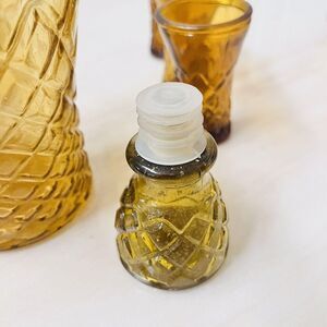 MCM Amber Glass Decanter Set w/6 Cordial Glasses Diamond Pattern Barware Taiwan