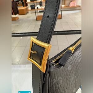 This MCM shoulder bag features the brand’s signature Visetos monogram print in black. The allover logo motif offers luxury and practicality. It has a secure zip closure and adjustable shoulder strap. Its compact silhouette adds elegance to any look. Includes a dust bag.