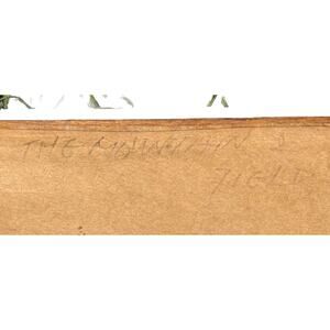 The tiles measure approximately 6 x 6 and sit side-by-side. The entire framed piece is approximately 11 1/2 x 16 1/4 hook on the back for hanging and written in pencil on the back says "The Mountain + Field" the burlap has seen better days this would be beautiful disassembled and remounted and framed or leave it rustic as is, I searched all variations of the name and couldn’t find anything, but it’s very beautiful without identifying the specific artist. I'm assuming since it's dated 62 that the artist is probably deceased. Sold as shown please see all photos.
