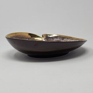 This vintage MCM Kidney Shell Shaped Ashtray Bowl showcases an organic shape with a unique blend of orange and brown. A stunning piece of mid-century modern design, crafted from quality ceramic. This item measures 11.25 inches, perfect for any retro-inspired decor.