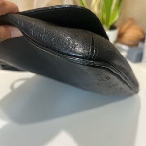 Authentic pre-loved. Black MCM embossed leather with charcoal gray hardwares. Comes with adjustable canvas long strap. A small white spot on the leather as shown in photo. Hardwares has some scratches. Very classy! Can be for men or women.