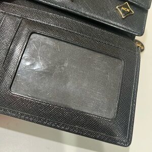 Authentic pre-loved. Black leather with gold hardwares and wallet charm. Some hardware fading. Plastic ID sleeve has signs of use.