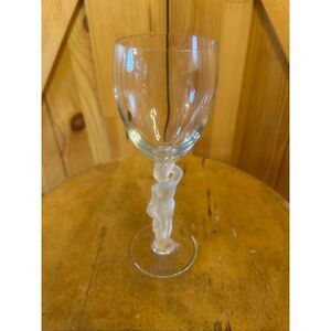 MCM Bacchus by France Frosted Glass Nude MALE Figure Claret Wine Glass has a chip on top edge 7.25” tall (5706)