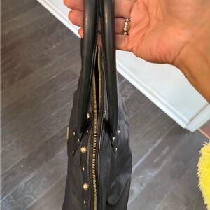 Elegant black crossbody bag by MCM. Features gold stud accents. Perfect for any occasion.