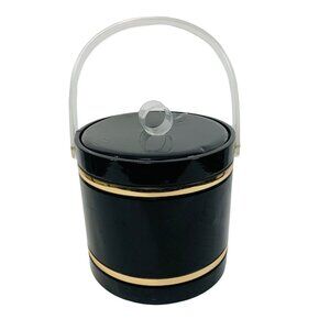 MCM Black Gold Ice Bucket Lucite Lid Handle VTG Barware Bar Cart Regency Decor