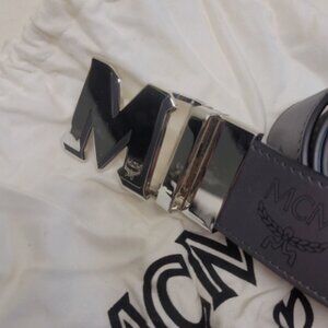 MCM Black Leather Reversible Belt with Silver Logo Buckle New w/ Dustbag Tags