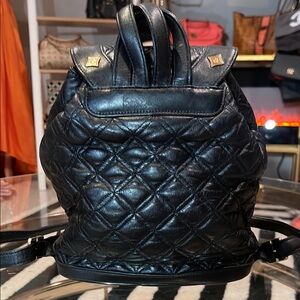 Experience the perfect blend of luxury and practicality with the MCM Black Quilted Backpack. Crafted with a diamond-shaped quilted pattern, this backpack exudes sophistication and style. Gold has some tarnishing. Inside is clean. Leather in good condition. No holes, smells, vintage. As is. Please see pics for call outs. Ask questions. As is. Overall great condition!!