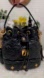 Elegant black quilted design. Gold-tone hardware. Drawstring closure with tassels.