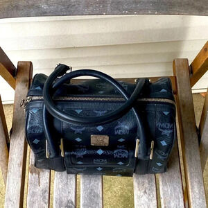 AUTHENTIC MCM Black Visetos Boston Bag